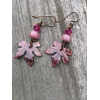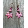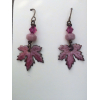 Beautiful enamelled small maple leaves by Anne Gardanne made into these special earrings adorned with Rhodochrosite and Swarovski crystals