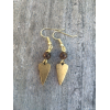 Antique Gold plated mini heart earrings handpainted with special paints allowing the creation of unique effects. The painted part is covered in a clear layer of resin to enhance the colors and for protection. Adorned with Bronzite beads