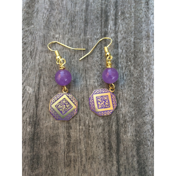 Handpainted earrings with special paints allowing the creation of unique effects. The painted part is covered in a clear layer of resin to enhance the colors and for protection.