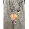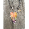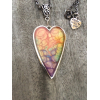 Heart pendant hand-painted in orange, yellow, green, purple and blue. The pendant is covered in a clear layer of resin to enhance the colors and for protection.